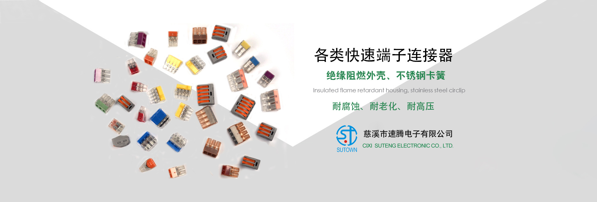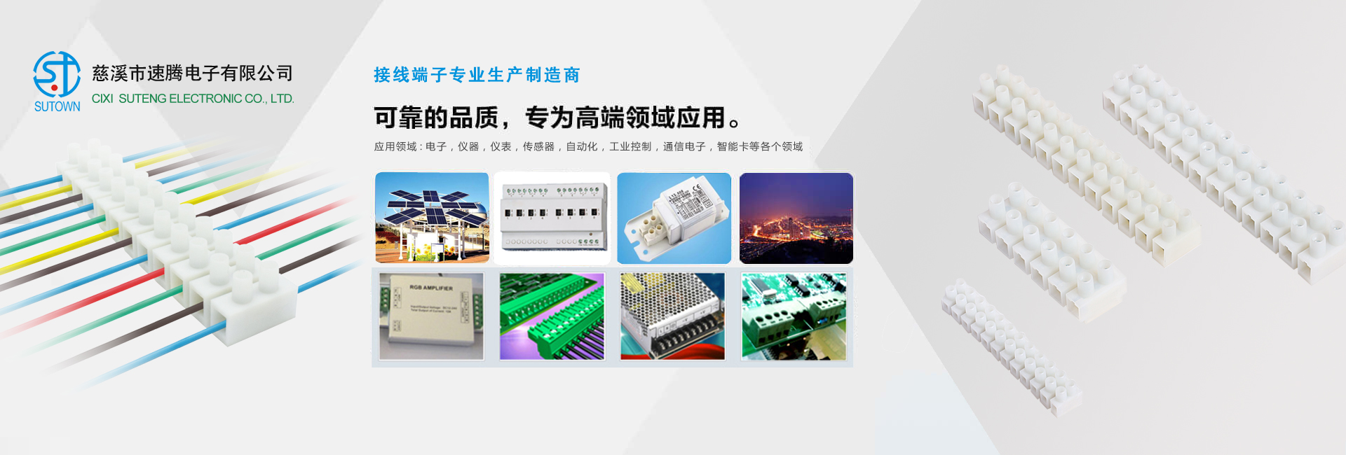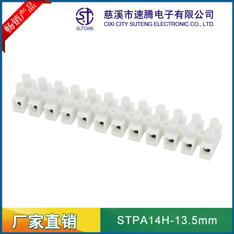 慈溪市速騰電子有限公司,是專業(yè)生接線端子生產(chǎn)廠家, 主要產(chǎn)品包話:貫通式接線端子;LED燈具端子;貼片端子;快速接線端子;插拔式接線端子;柵欄式接線端子;PCB接線端子;免螺絲式接線端子;LED電源接線端子;電氣接線端子;各類接線端子臺(tái);歐式插座;撥碼開關(guān);等各類連接器。